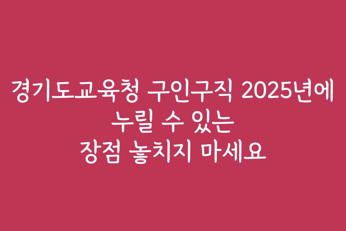경기도교육청 구인구직 2025년에 누릴 수 있는 장점 놓치지 마세요
