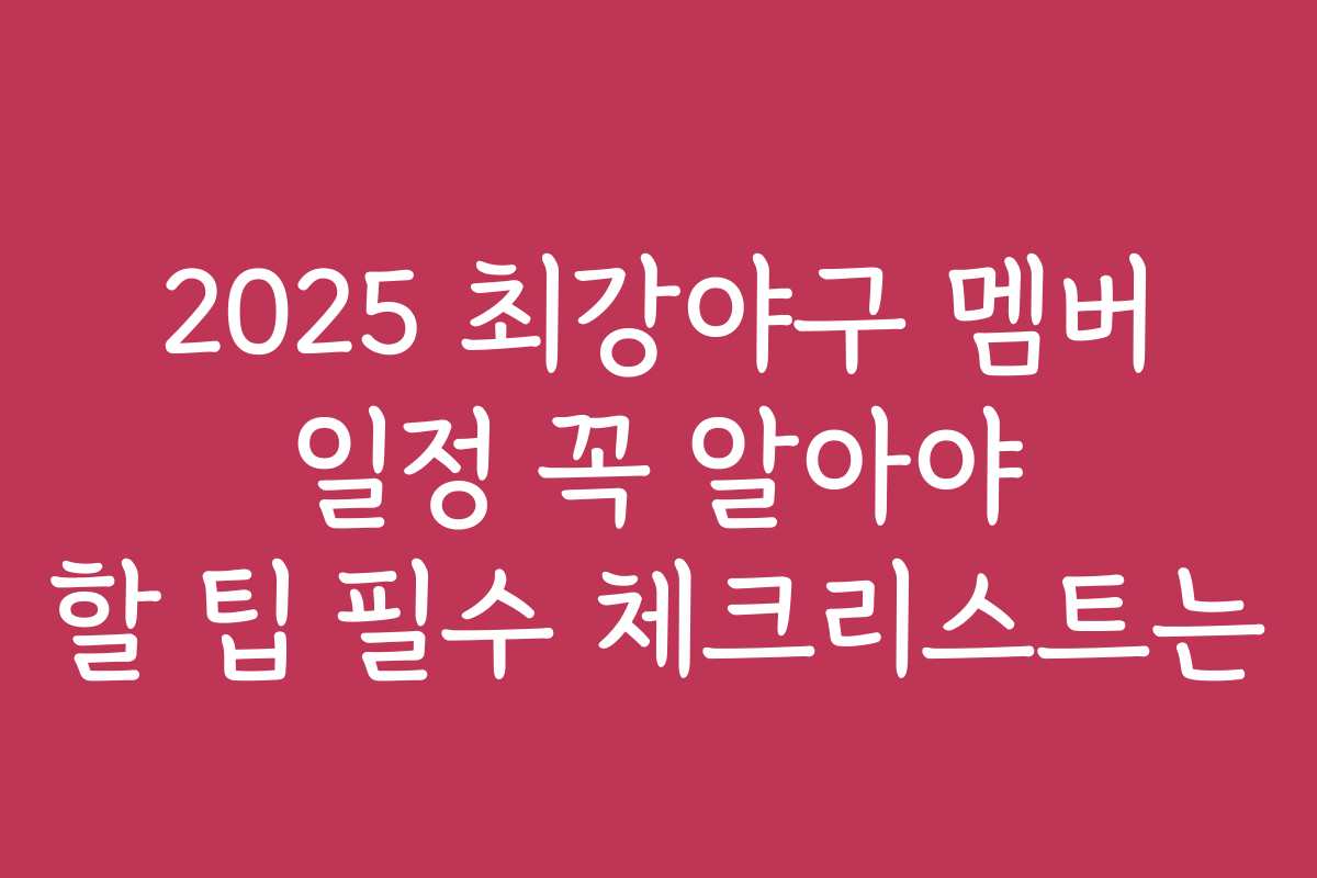 2025 최강야구 멤버 일정, 꼭 알아야 할 팁과 필수 체크리스트는?