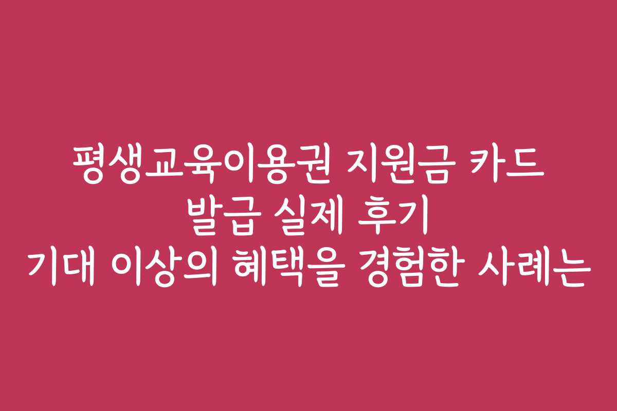 태그: 평생교육이용권, 지원금 카드, 후기, 교육혜택, 경제적 부담, 발급방법, 장기적 교육, 경력 발전
