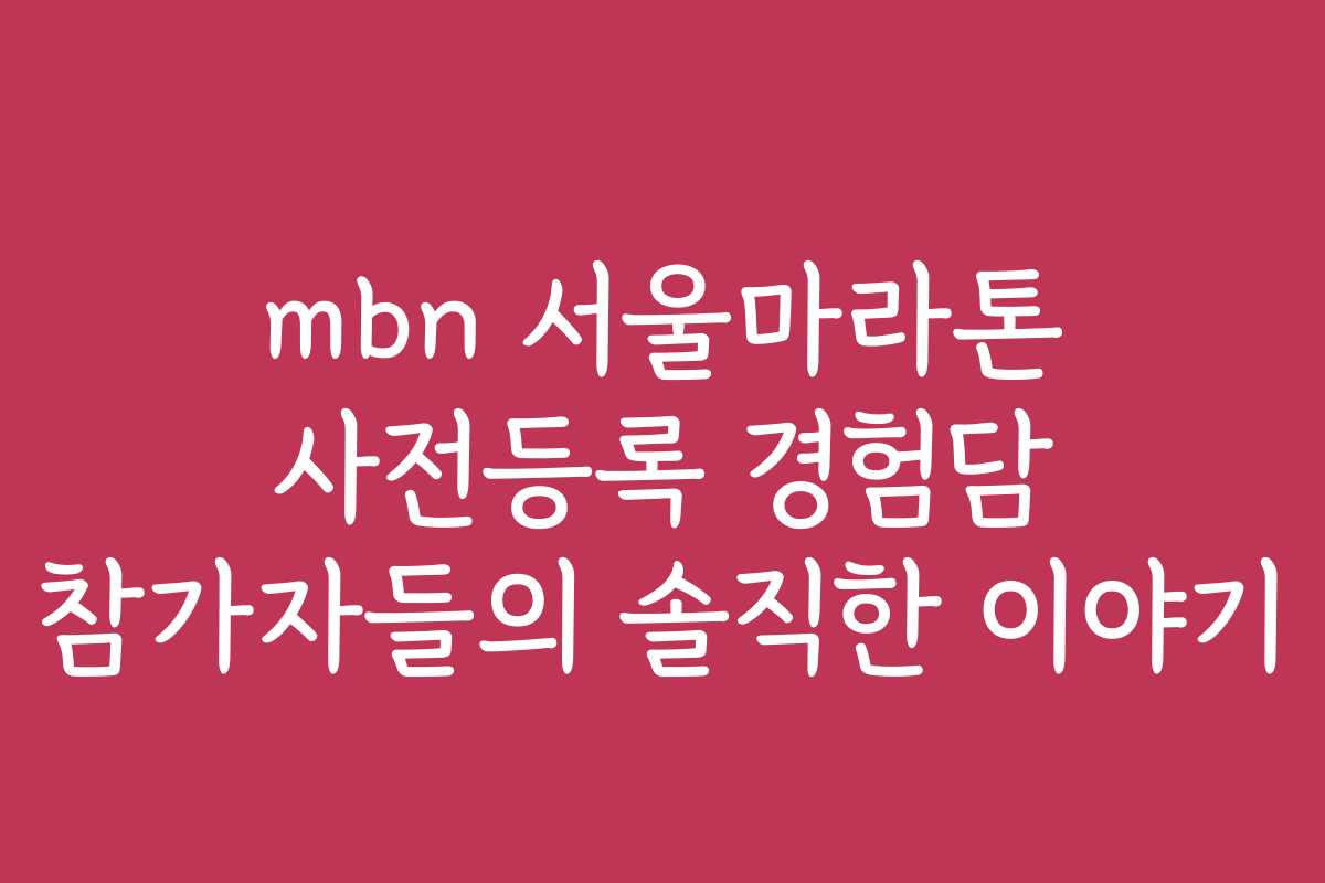 키워드: mbn 서울마라톤, 사전등록 경험담, 마라톤 참가 후기, 등록 팁, 이벤트, 서울마라톤, 러너 경험, 등록 정보, 마라톤 절차, 사전 준비, 건강 상태