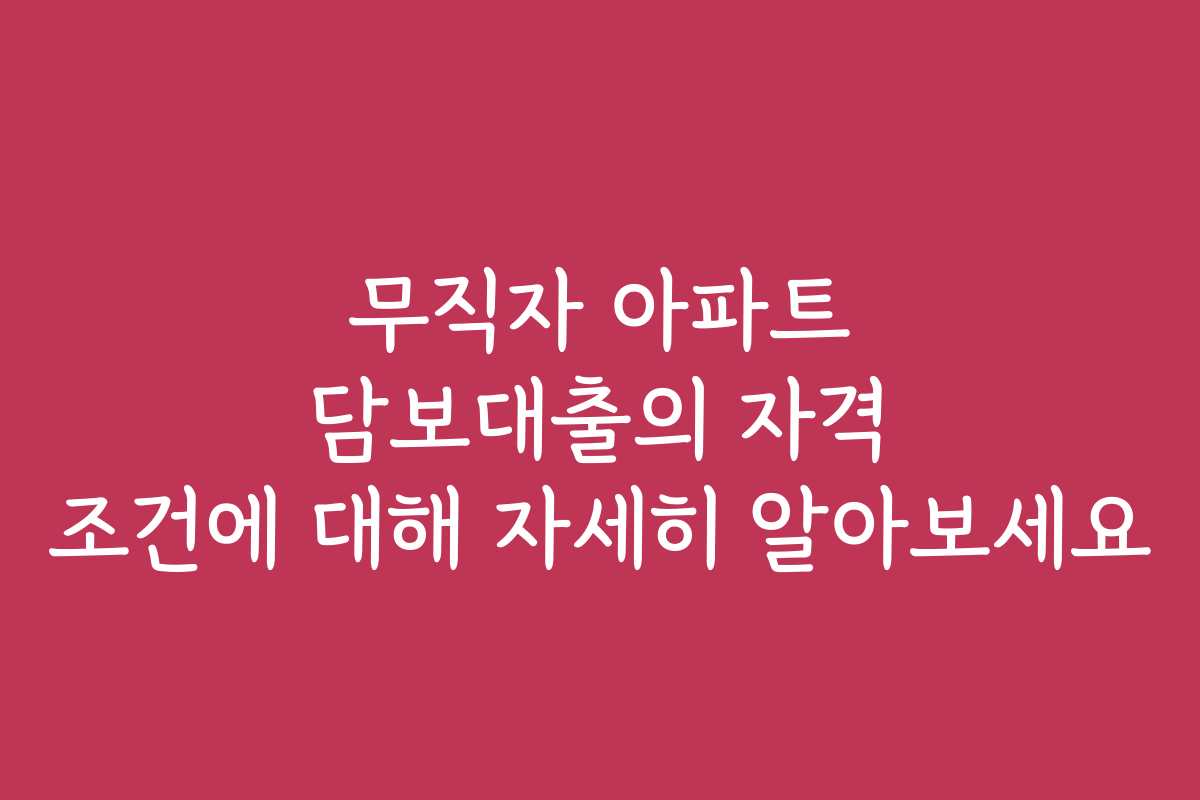 핵심 및 연관 키워드: 무직자 아파트 담보대출, 대출 자격 조건, 무직자 대출, 아파트 담보대출 조건, 대출 신청 방법, 대출 상품 비교, 부동산 대출, 대출 심사 기준, 신용 등급, 금융 상품 리뷰, 대출 노하우