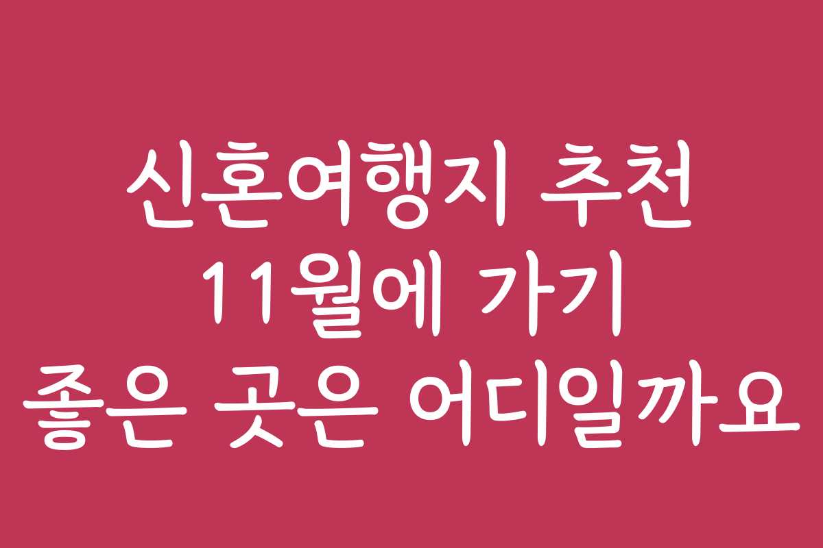 핵심 키워드: 신혼여행지 추천, 11월 여행지, 해외 여행지, 국내 여행지, 신혼여행 팁, 여행 예산, 여행지 비교, 로맨틱 여행, 여행 준비, 할인 혜택