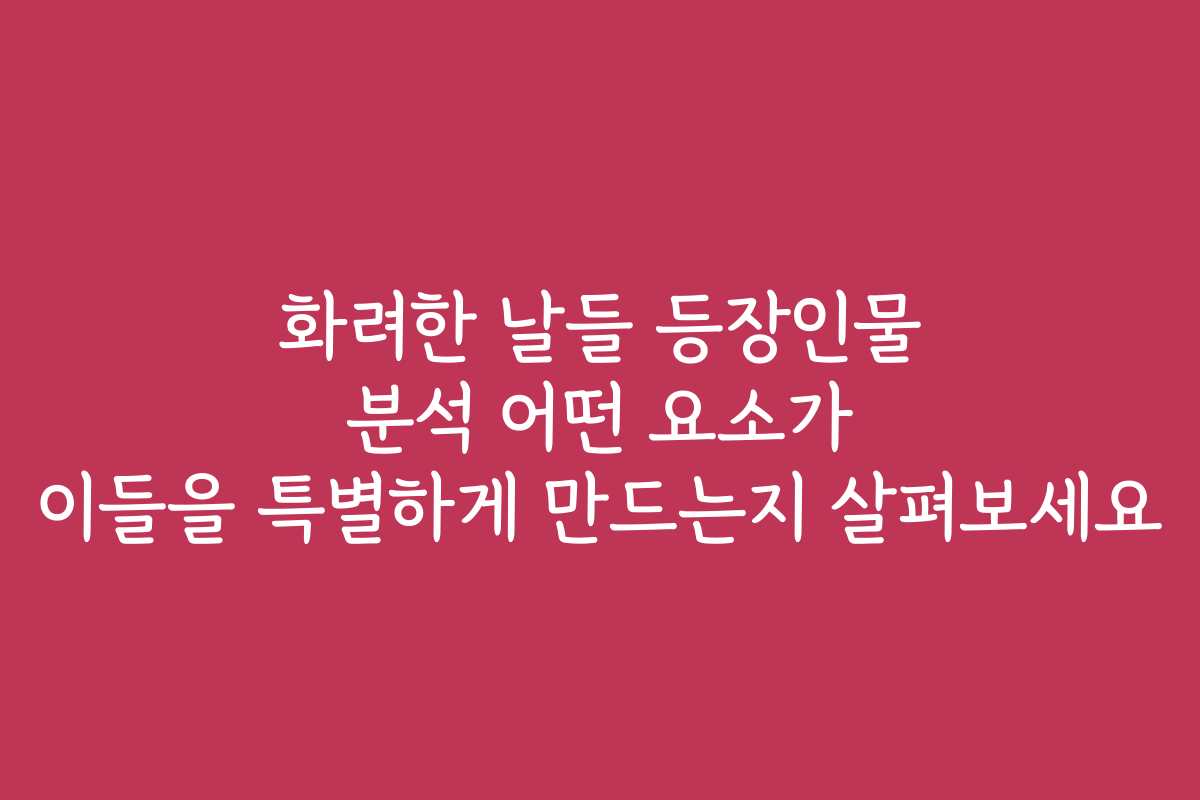 핵심 키워드: 화려한 날들, 등장인물 분석, 특별한 요소, 성장, 관계, 갈등, 매력, 감정선, 이야기, 주제, 변화