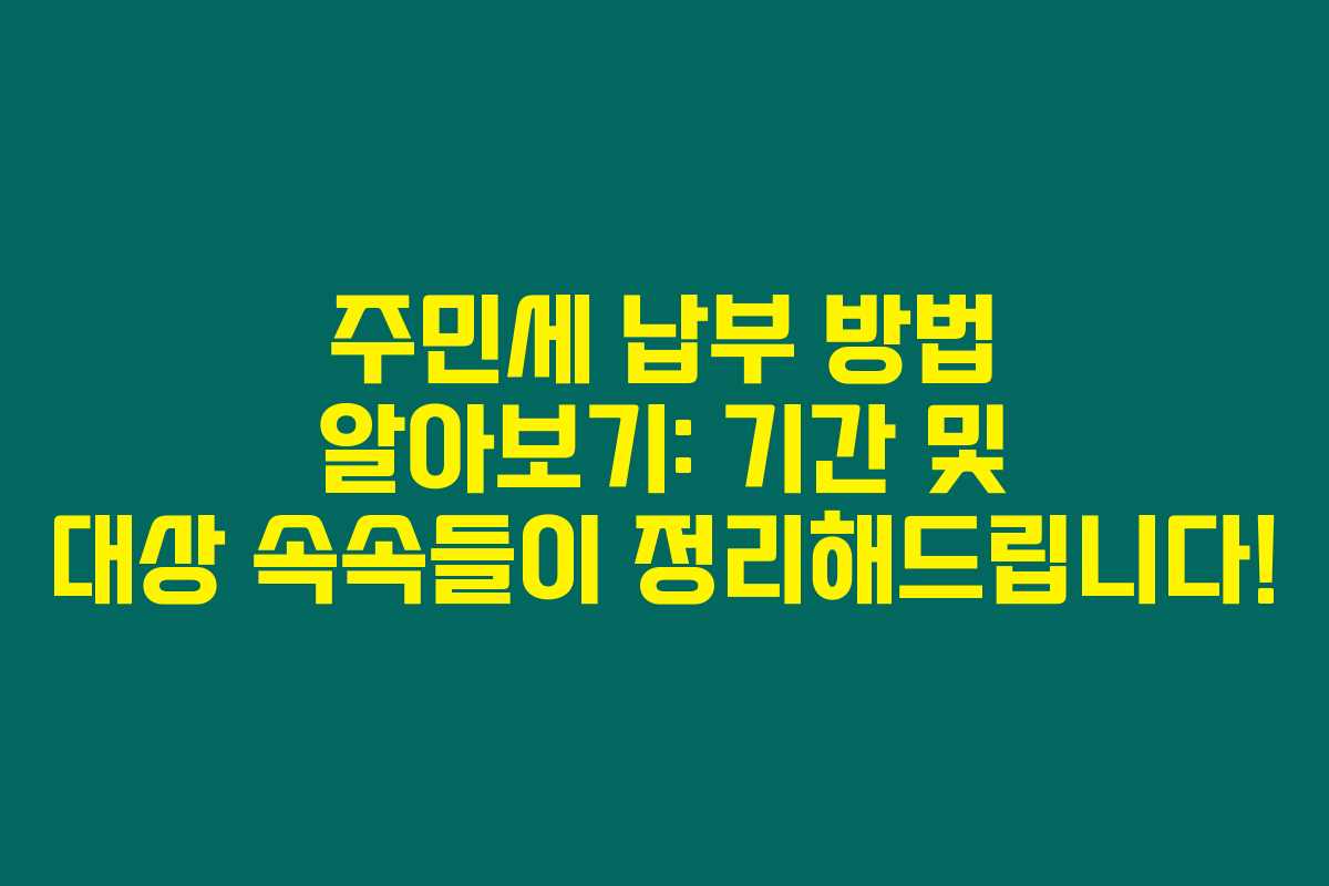 주민세 납부의 기본 정보를 잘 알고 계신가요? 나중에 공매 등 여러 가지 불이익을 당하지 않기 위해서는 미리 납부 기간과 방법을 확인하여 행정적인 불편을 줄이는 것이 중요해요!
