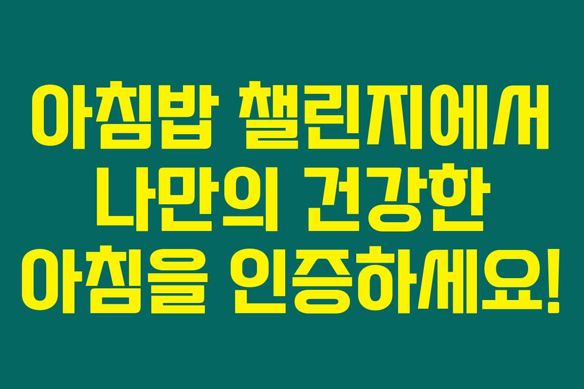 아침밥 챌린지는 단순한 이벤트가 아니라 우리의 건강을 되찾기 위한 훌륭한 기회입니다. 매일 아침 여러분의 소중한 건강을 지키면서 작은 보상도 챙깁시다! 각자의 아침이 얼마나 중요한지 다시 한 번 느끼는 계기가 되었기를 바라요. 그럼 다들 건강한 아침 되세요!