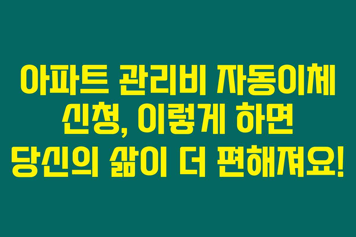 아파트 관리비 자동이체 신청은 향상된 생활을 위한 실용적인 방법이에요. 이를 통해 시간을 절약하고 복잡한 절차를 간소화할 수 있답니다. 현대 생활에서는 효율이 무엇보다 중요하니까요!