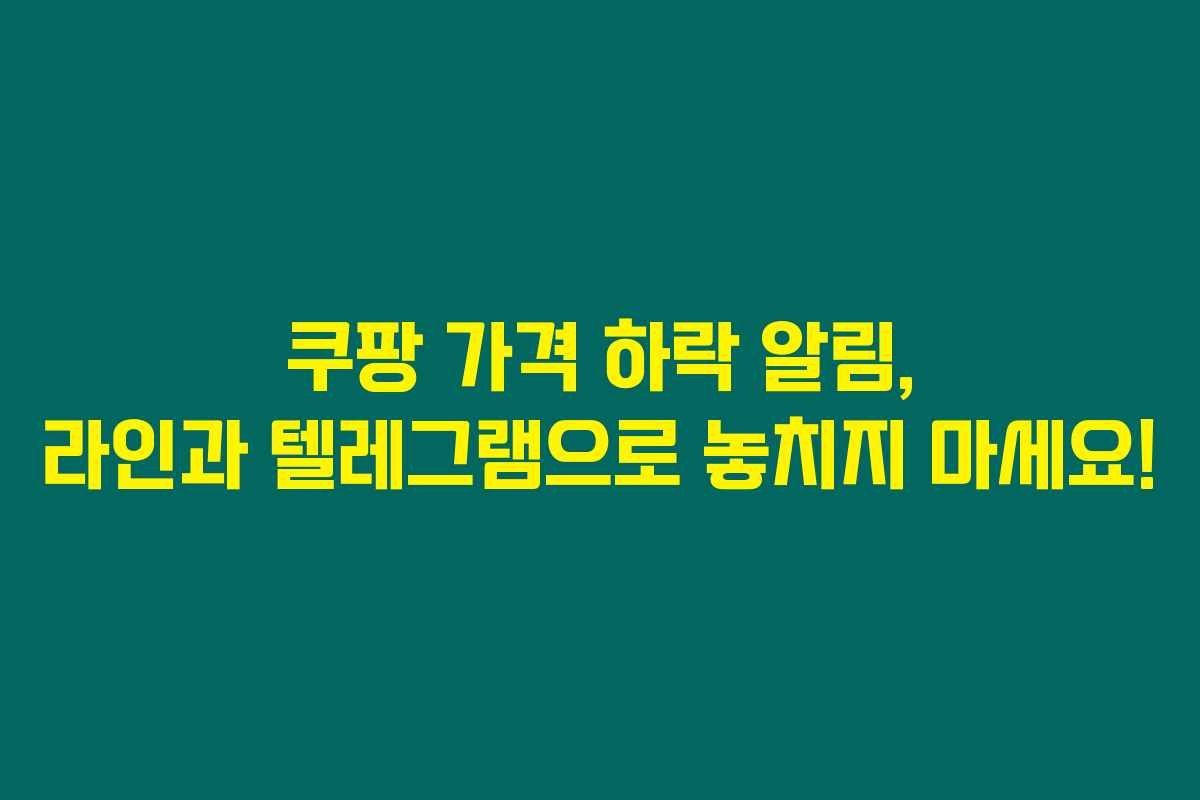 쿠팡에서 어떤 상품의 가격이 하락하면 가장 먼저 알림을 받고 싶으신가요? 가격 하락 알림을 쉽게 받을 수 있는 방법을 찾고 계시다면, 오늘 소개할 내용을 주목해주세요. 쿠팡 상품의 가격이 내려갈 때마다 알림을 받아볼 수 있는 방법이 있습니다. 라인과 텔레그램을 통해 편리하게 가격 하락 소식을 받아보세요.