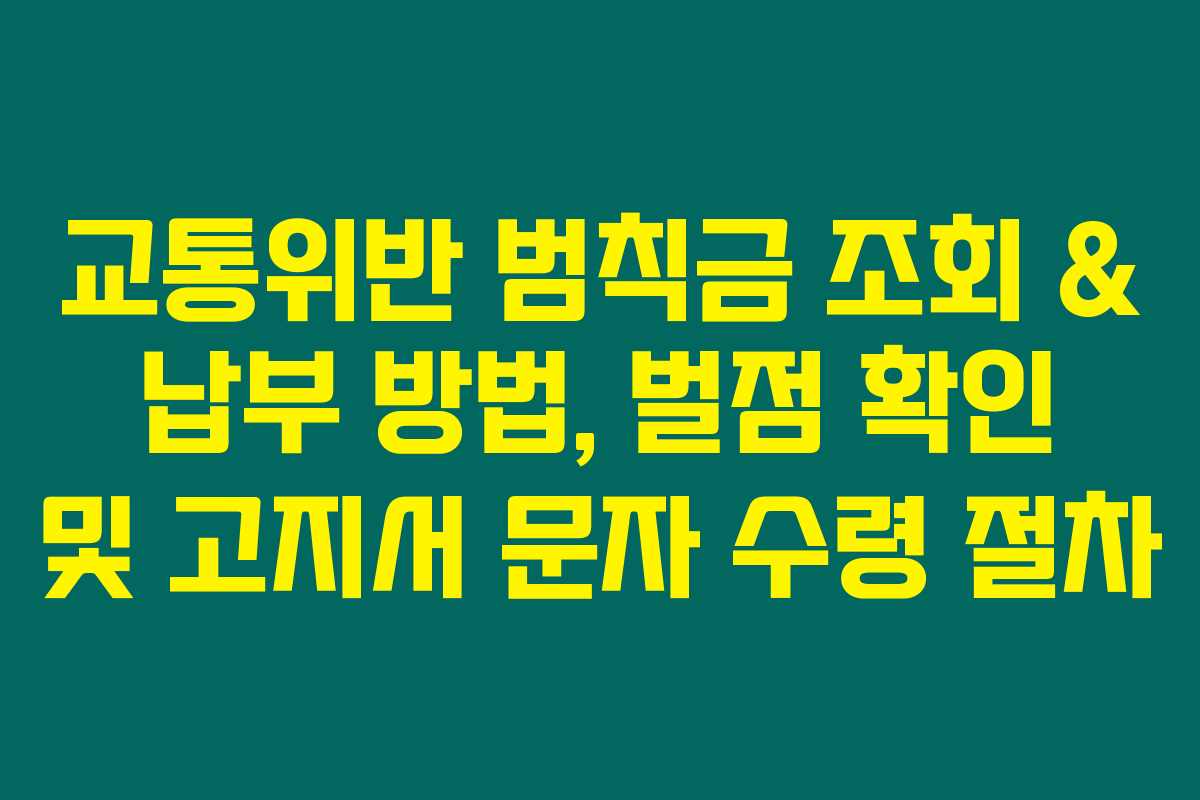 교통법규 준수는 모든 운전자의 의무입니다. 하지만 간혹 교통위반을 할 수 있는데, 이때 발생하는 범칙금과 벌점에 대해 잘 알고 있어야 합니다. 아래를 읽어보시면 범칙금 조회부터 납부, 벌점 확인, 고지서 문자 수령까지 편리하게 관리하는 방법에 대해 알 수 있습니다.