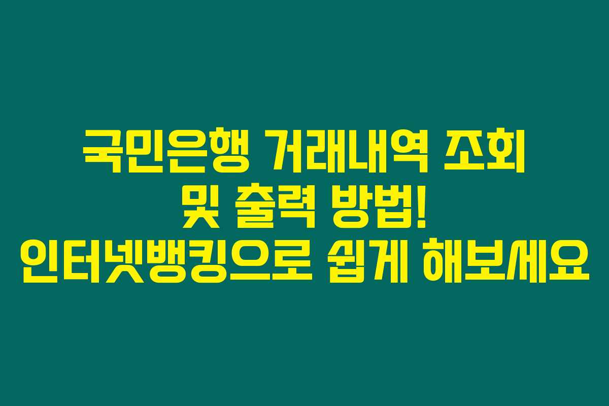 국민은행 거래내역을 조회하거나 출력하고 싶으신가요? 국민은행을 이용하는 많은 고객들이 인터넷뱅킹을 통해 손쉽게 자신의 금융 거래를 관리할 수 있습니다. 아래를 읽어보시면 간편하게 거래내역 조회와 출력 방법을 배울 수 있을 거예요!