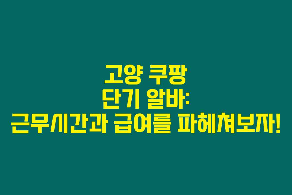 고양 쿠팡 단기 알바: 근무시간과 급여를 파헤쳐보자!