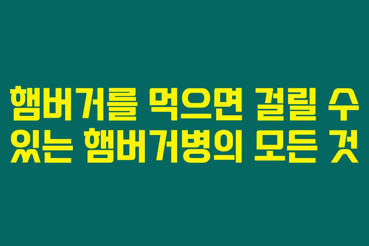 햄버거를 먹는 즐거움, 그 뒤에 숨겨진 위험이 있다는 사실을 알고 계신가요? 햄버거병, 즉 용혈성 요독 증후군은 햄버거와 관련된 질환으로 주목받고 있습니다. 아래를 읽어보시면 햄버거병의 정의, 원인, 증상, 예방 방법에 대해 자세히 알게 되실 거예요.