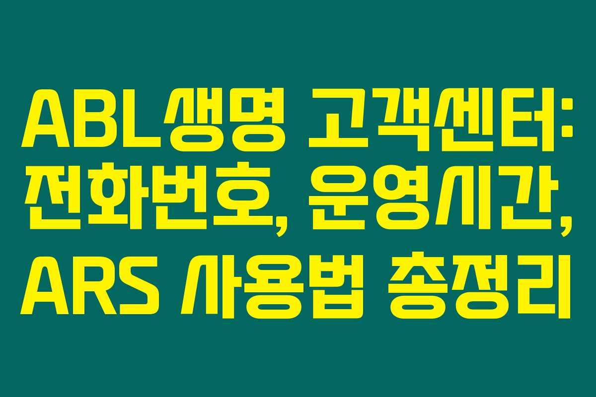 ABL생명 고객센터는 여러분의 보험 관련 궁금증을 신속하게 해결해주는 곳입니다. 전화번호와 운영 시간을 잘 기억해 두시고, 필요할 때 언제든지 이용해보세요!
