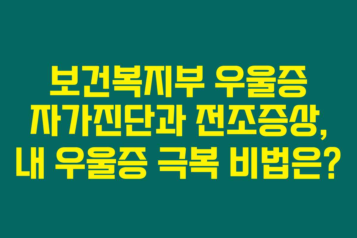 모두가 힘든 시대를 살아가고 있는 요즘, 우울증은 더 이상 남의 이야기가 아니에요. 갑자기 찾아오는 우울한 기분과 무기력함, 이게 바로 우울증의 전조 증상일 수 있죠. 그렇다면, 당신도 우울증에 대한 자가진단이 필요하지 않을까요? 아래를 읽어보시면, 보건복지부의 자가진단 테스트 방법과 우울증 전조증상 8가지를 통해 스스로를 돌아보는 기회를 가지실 수 있을 거예요.