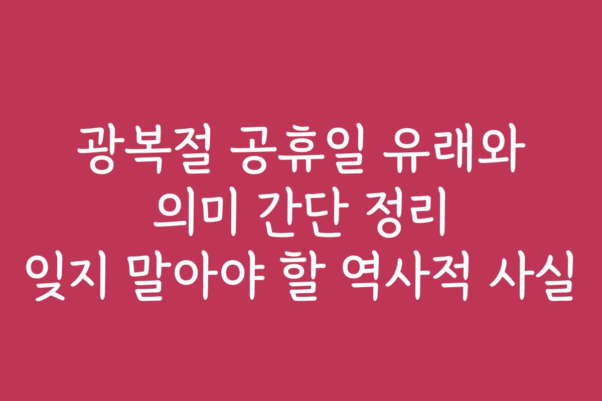 광복절은 한 나라의 역사에서 매우 중요한 의미를 지니고 있습니다. 그러나 많은 사람들이 이 날의 진정한 의미와 유래를 잘 모르고 지나칠 때가 많습니다. 오늘은 광복절 공휴일의 유래와 의미, 그리고 반드시 기억해야 할 역사적 사실들에 대해 간단히 정리해 보겠습니다.