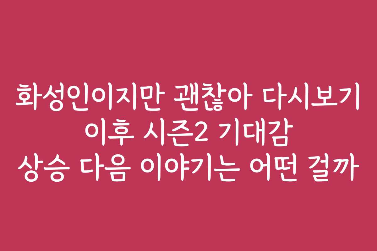 드라마 <화성인이지만 괜찮아>의 첫 시즌이 끝난 후 팬들은 다음 시즌에 대한 기대감을 높이고 있습니다. 이 드라마는 독특한 설정과 생동감 있는 캐릭터들로 많은 사랑을 받았는데요. 시즌2에서는 어떤 이야기들이 펼쳐질지, 궁금하지 않으신가요?
