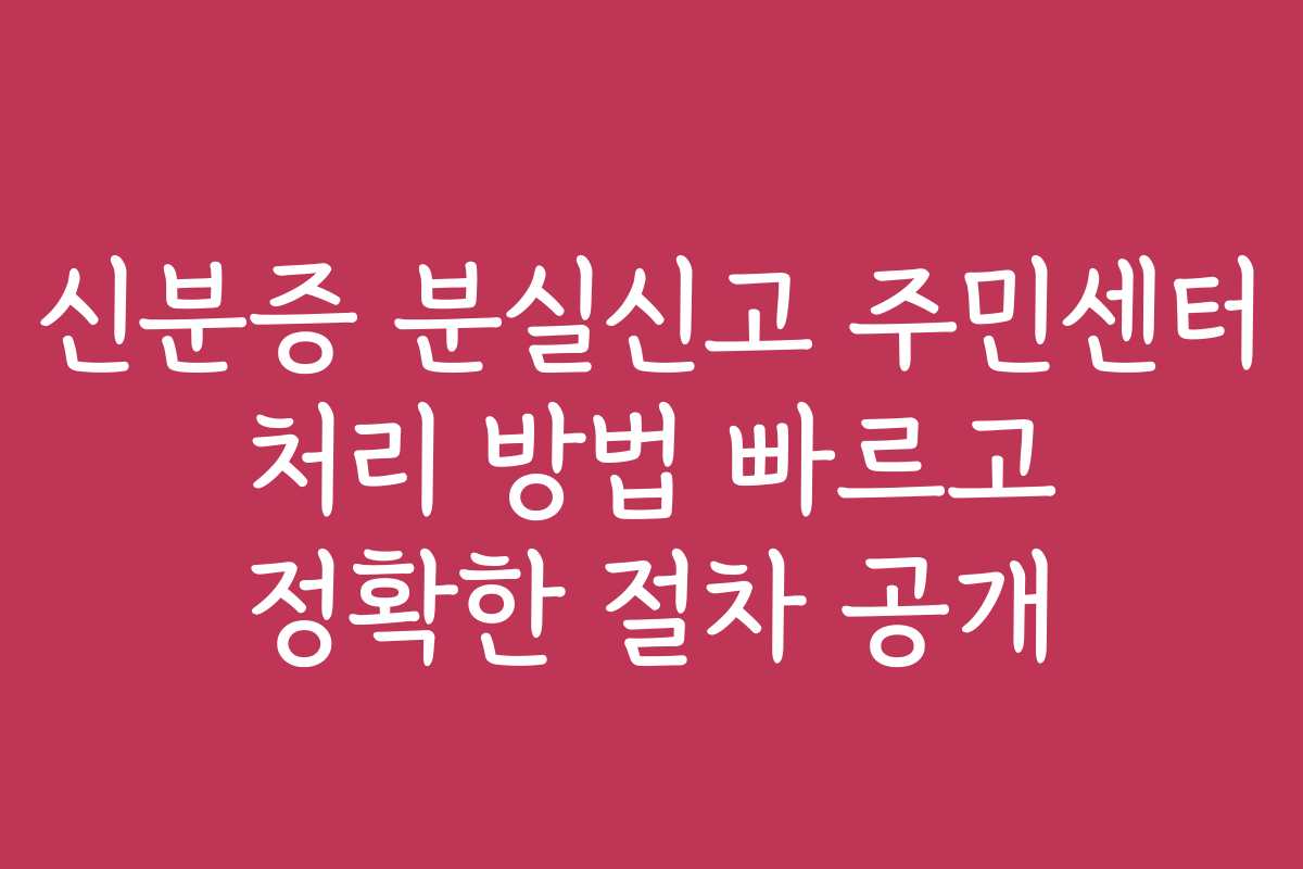 신분증 분실 신고, 주민센터, 분실 신고 절차, 처리 방법, 주민등록증, 신속한 신고, 재발급, 민원 처리, 대처 방법, 경과 확인, 주민센터 서비스