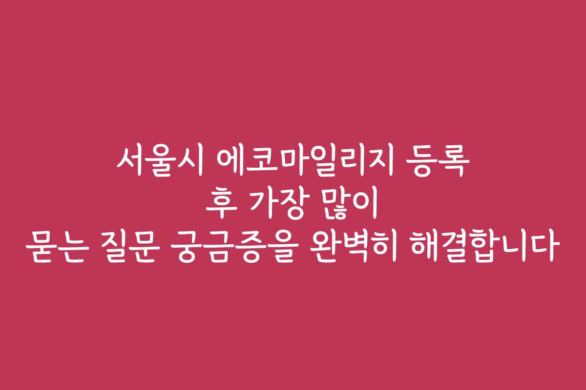 서울시 에코마일리지 등록 후 가장 많이 묻는 질문 궁금증을 완벽히 해결합니다