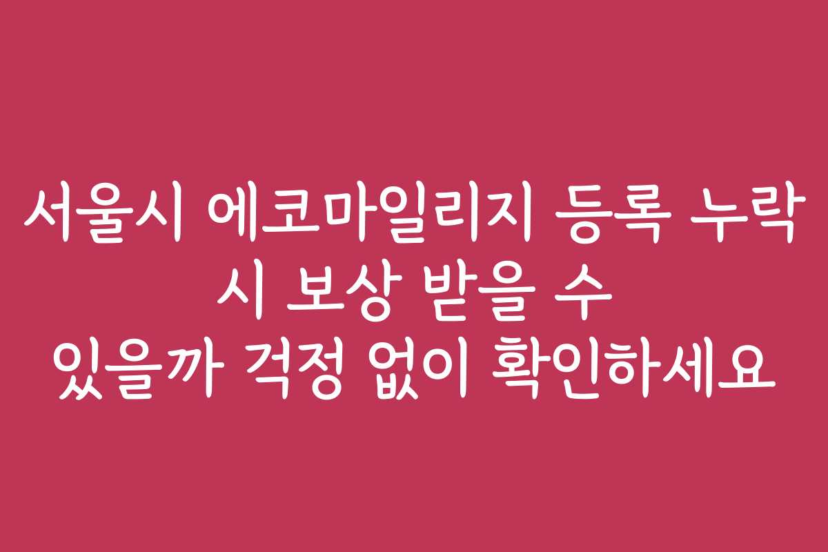 서울시 에코마일리지 등록 누락 시 보상 받을 수 있을까 걱정 없이 확인하세요