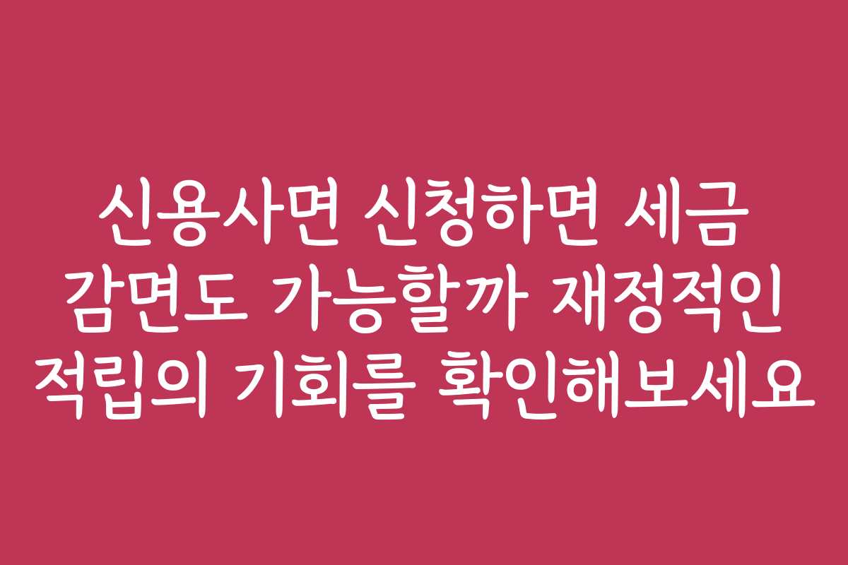 신용사면 신청하면 세금 감면도 가능할까 재정적인 적립의 기회를 확인해보세요