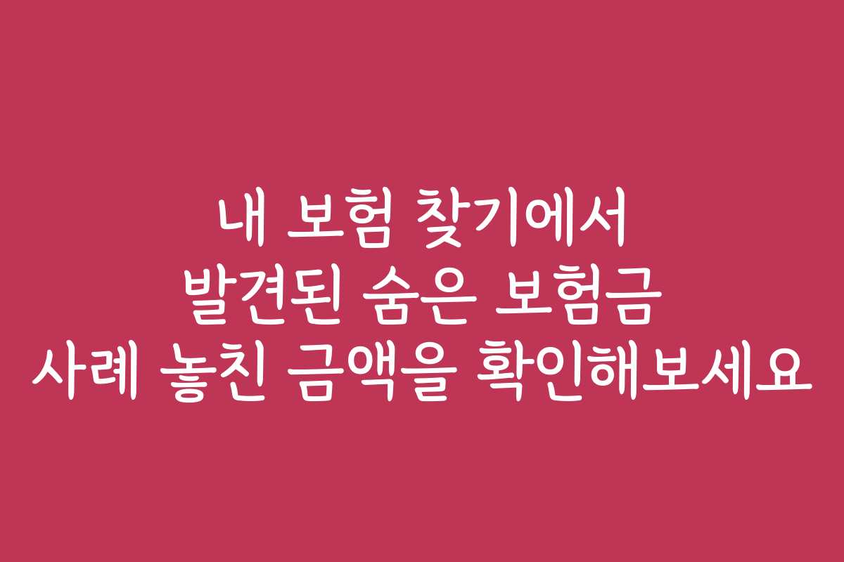핵심 키워드: 보험, 숨은 보험금, 내 보험 찾기, 보험 청구, 재정 안정, 금융 상품, 보험 상품, 보험금 신청, 보험사, 소비자 후기, 보험 정보