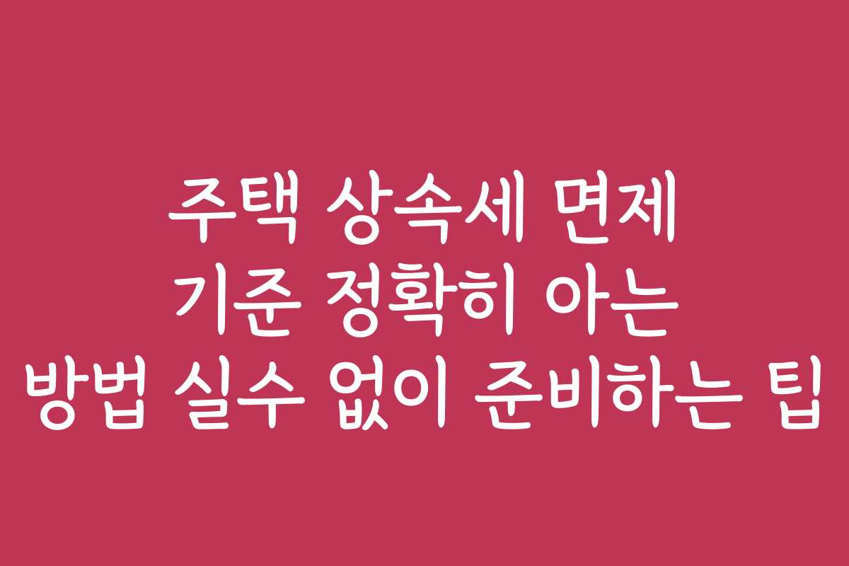 주택 상속세 면제 기준 정확히 아는 방법 실수 없이 준비하는 팁