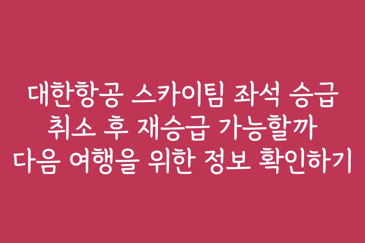 대한항공 스카이팀 좌석 승급 취소 후 재승급 가능할까 다음 여행을 위한 정보 확인하기
