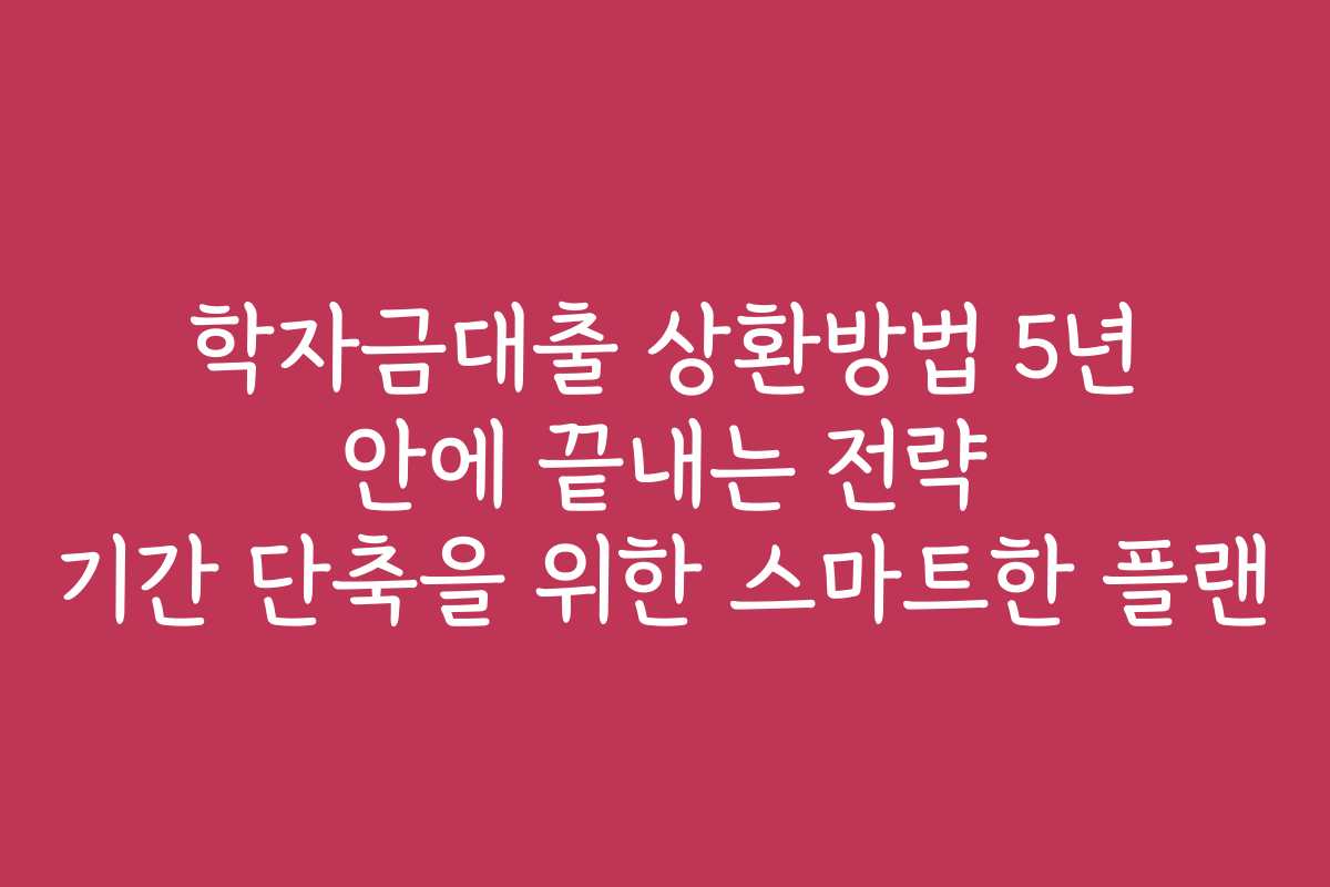학자금 대출을 5년 안에 상환하기 위해서는 몇 가지 실질적인 전략이 필요합니다. 아래에 소개하는 방법들을 통해 본인에게 알맞은 상환 계획을 세워 보세요!