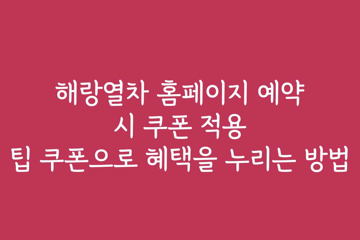 해랑열차 홈페이지에서 예약하는 과정은 심플하지만, 쿠폰을 적용하는 방법은 다소 헷갈릴 수 있습니다. 쿠폰을 어떻게 적용해야 하는지 정확히 알고 있어야 할 필요가 있습니다. 아래에서는 상세한 단계와 함께 사용법을 안내해 드릴게요.