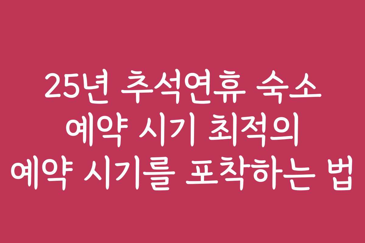 추석 연휴가 다가오면 많은 사람들이 여행 계획을 세웁니다. 하지만 숙소 예약 시기를 놓치면 원하는 장소에서의 숙소를 확보하지 못할 수 있습니다. 이 글에서는 25년 추석연휴의 최적의 숙소 예약 시기와 그 방법에 대해 알아보겠습니다.
