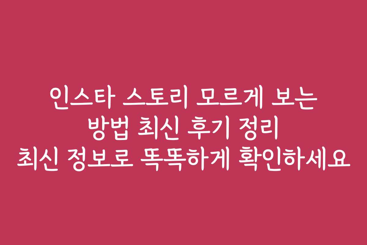 인스타 스토리 모르게 보는 방법 최신 후기 정리 최신 정보로 똑똑하게 확인하세요
