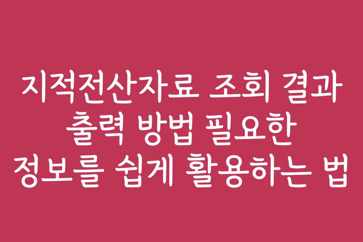 지적전산자료를 조회할 때 원하는 정보를 찾는 것은 쉽지 않습니다. 효율적으로 정보를 활용하기 위해서는 올바른 출력 방법을 이해해야 합니다. 이 글에서는 지적전산자료 조회 결과를 효과적으로 출력하는 방법과 필요한 정보를 쉽게 활용하는 법을 소개합니다.