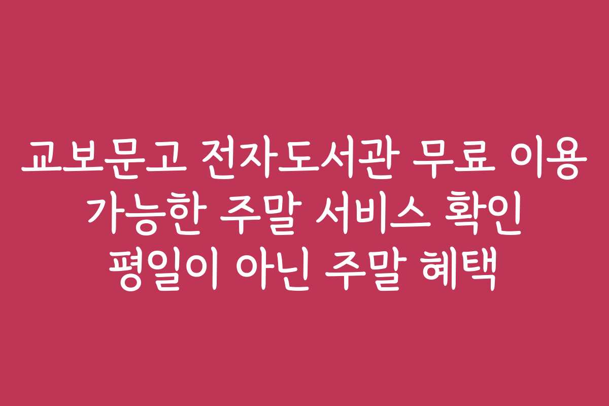 교보문고, 전자도서관, 주말 무료 이용, 독서, 전자책, 대여 서비스, 무료 서비스, 이용 방법, 추천 도서, 독서 후기, 사용자 피드백