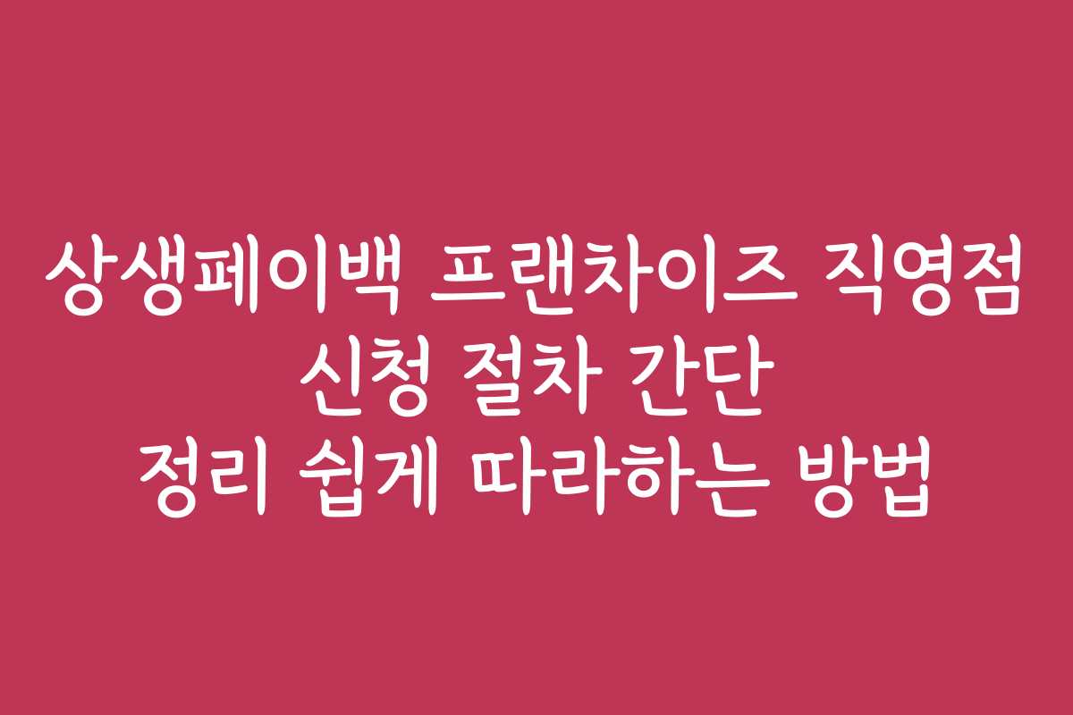 상생페이백 프랜차이즈 직영점 신청 절차 간단 정리 쉽게 따라하는 방법