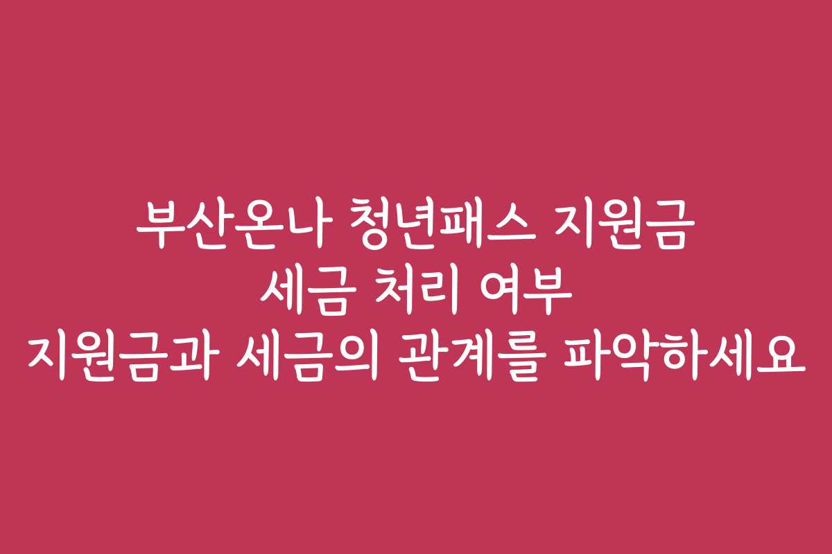 부산온나 청년패스 지원금 세금 처리 여부 지원금과 세금의 관계를 파악하세요