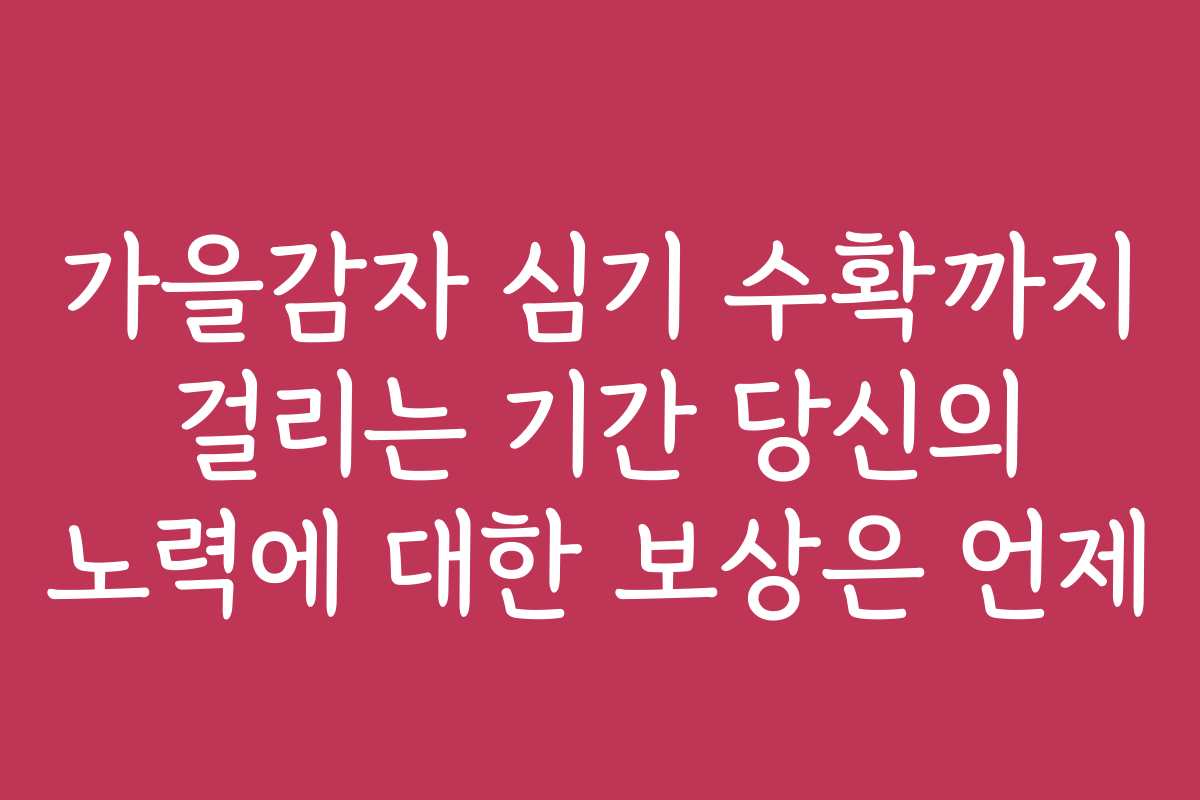 가을의 풍성함을 느끼기 위해 많은 사람들이 가을감자를 심습니다. 하지만 가을감자 심기부터 수확까지의 과정은 간단하지 않습니다. 이 글에서는 가을감자 심기를 통해 당신의 노력에 대한 보상을 언제 받을 수 있는지 알아보겠습니다.