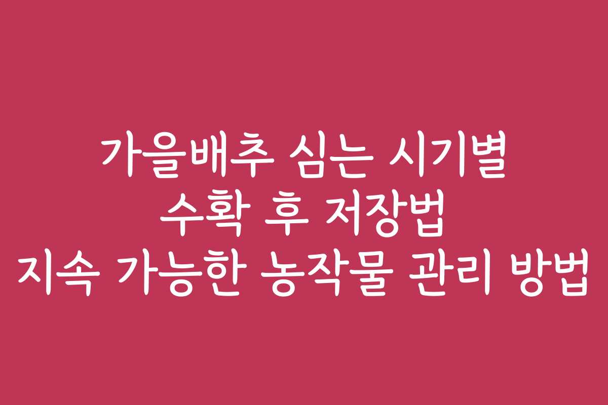 가을배추 심는 시기별 수확 후 저장법 지속 가능한 농작물 관리 방법