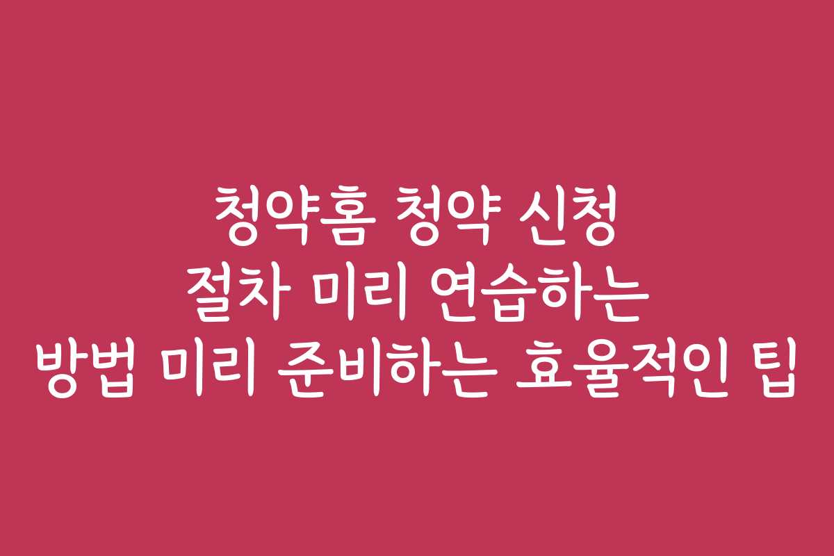 청약홈 청약 신청 절차 미리 연습하는 방법 미리 준비하는 효율적인 팁
