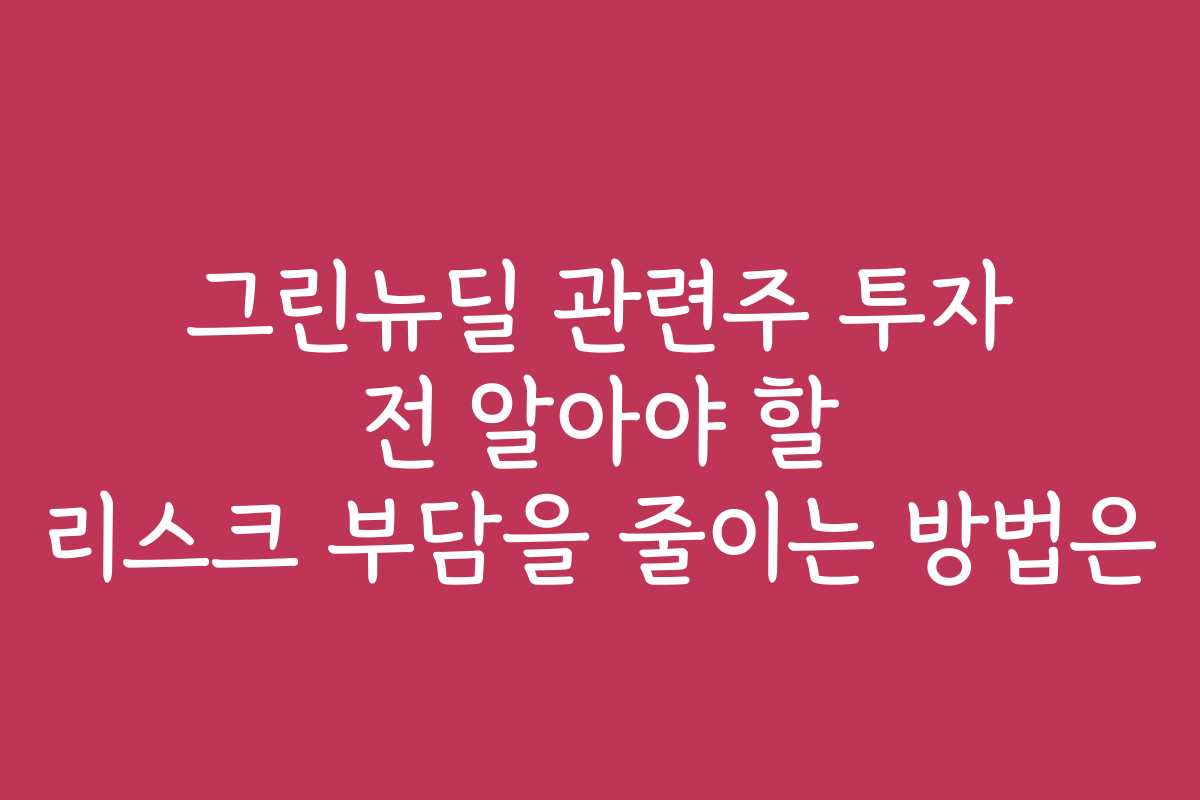 그린뉴딜은 친환경 에너지와 지속 가능한 경제 성장을 목표로 하는 중요한 트렌드입니다. 하지만 관련주에 투자하는 데는 리스크가 따릅니다. 이 글에서는 그린뉴딜 관련주 투자 전 꼭 알아야 할 리스크 부담을 줄이는 방법을 알아보겠습니다.
