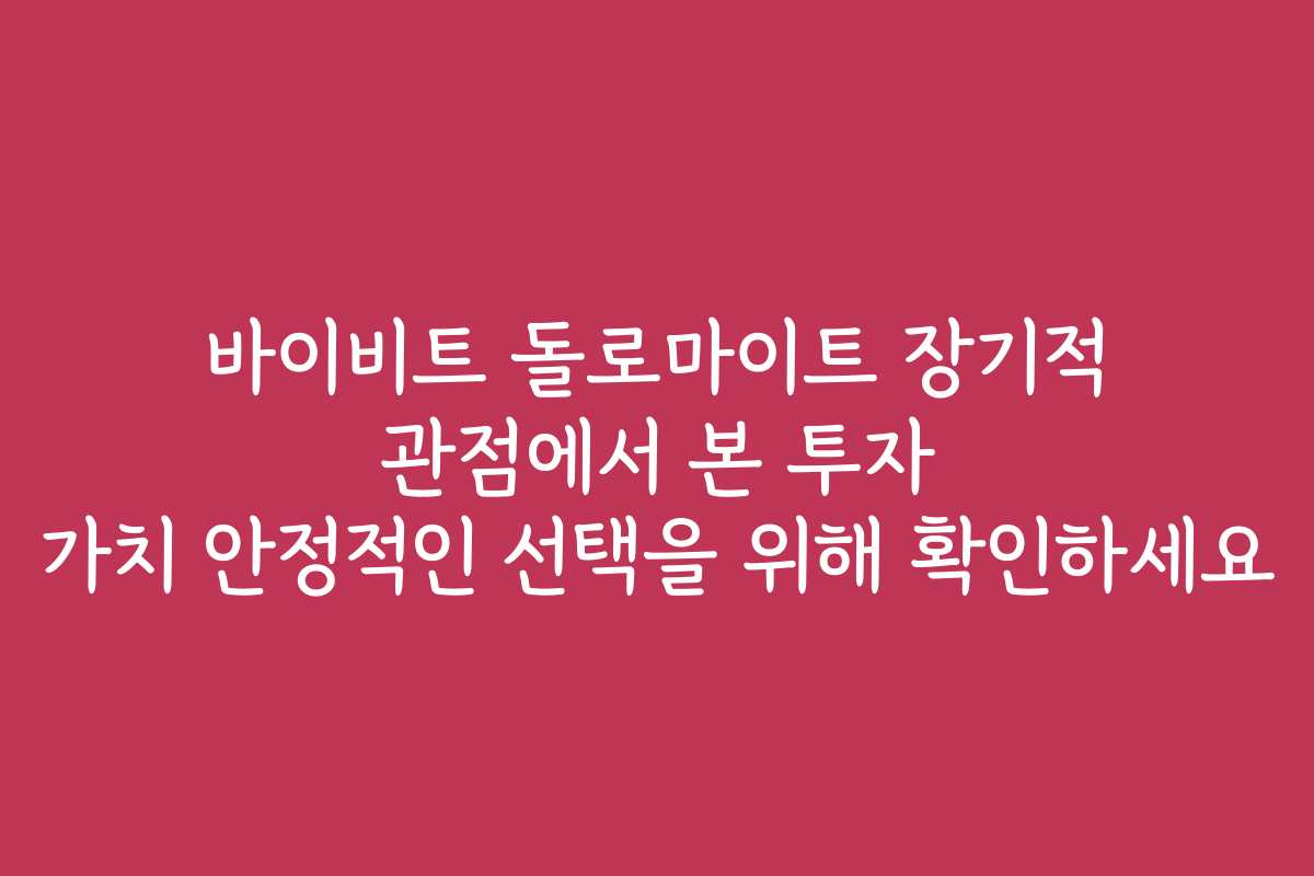 바이비트 돌로마이트 장기적 관점에서 본 투자 가치 안정적인 선택을 위해 확인하세요