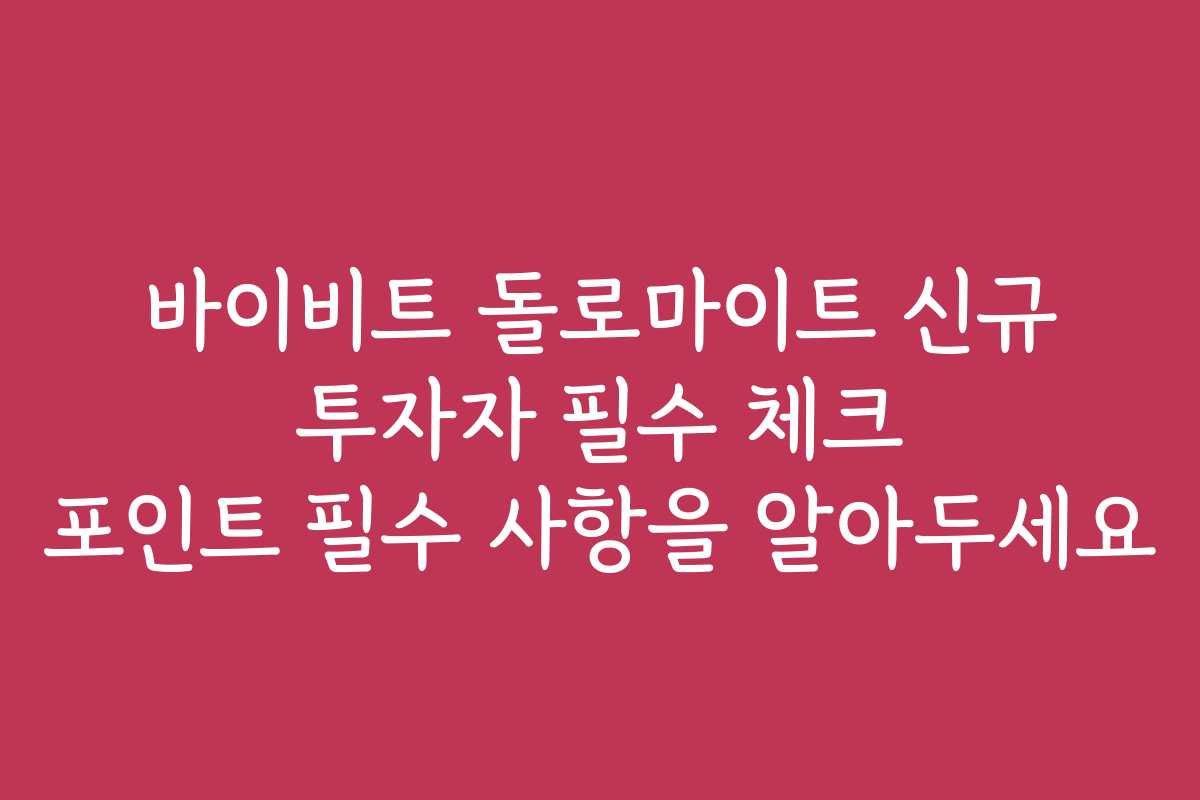 바이비트 돌로마이트 신규 투자자 필수 체크 포인트 필수 사항을 알아두세요