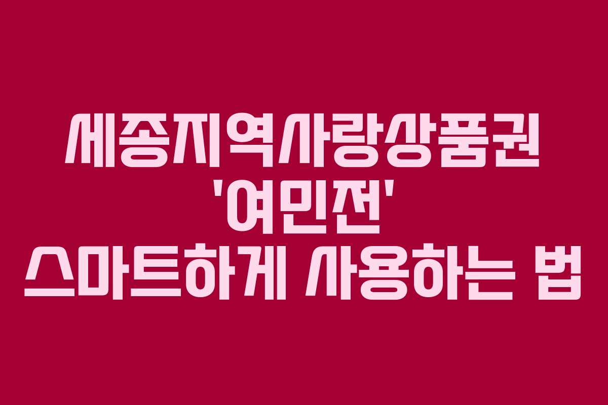 세종지역사랑상품권인 여민전은 많은 사람들에게 알뜰한 소비를 돕는 유용한 수단입니다. 그러나 사용처가 궁금할 때가 많으실 텐데요, 여민전을 효율적으로 사용하기 위한 방법과 가맹점 정보를 함께 살펴보겠습니다.