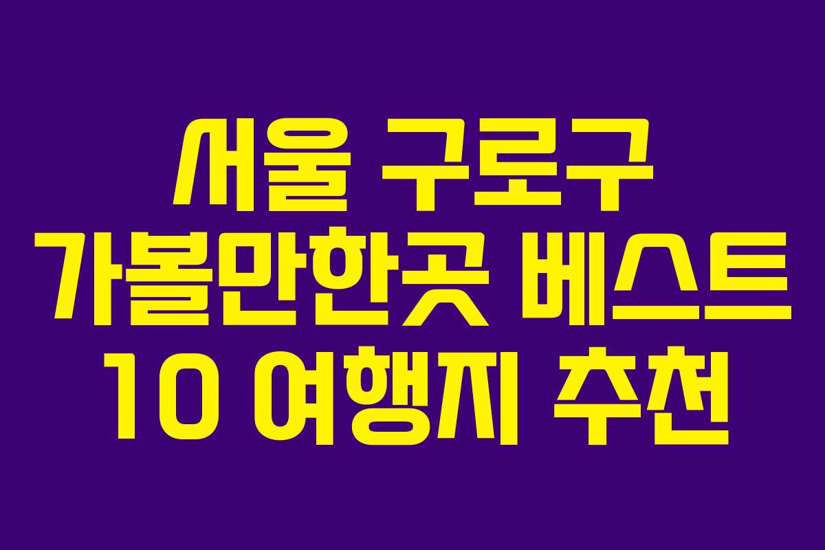 서울 구로구는 다양한 문화와 자연경관을 자랑하는 지역으로, 많은 관광 명소가 있습니다. 이번 포스팅에서는 구로구에서 꼭 방문해야 할 10곳의 여행지를 소개합니다.