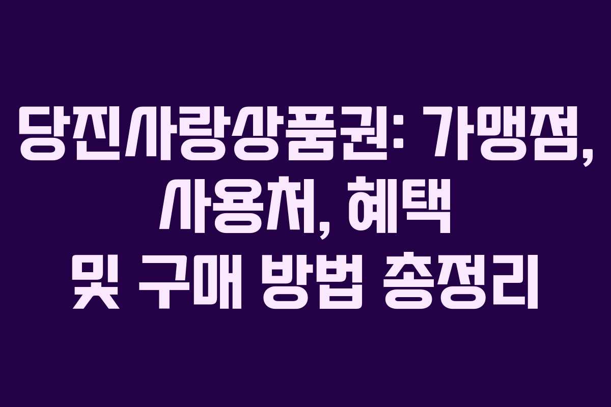 당진사랑상품권: 가맹점, 사용처, 혜택 및 구매 방법 총정리
