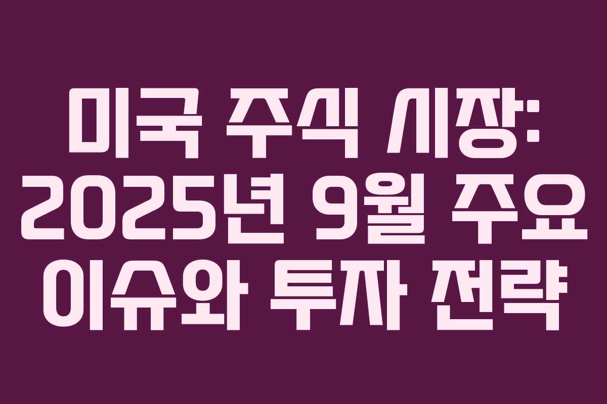 미국 주식 시장: 2025년 9월 주요 이슈와 투자 전략