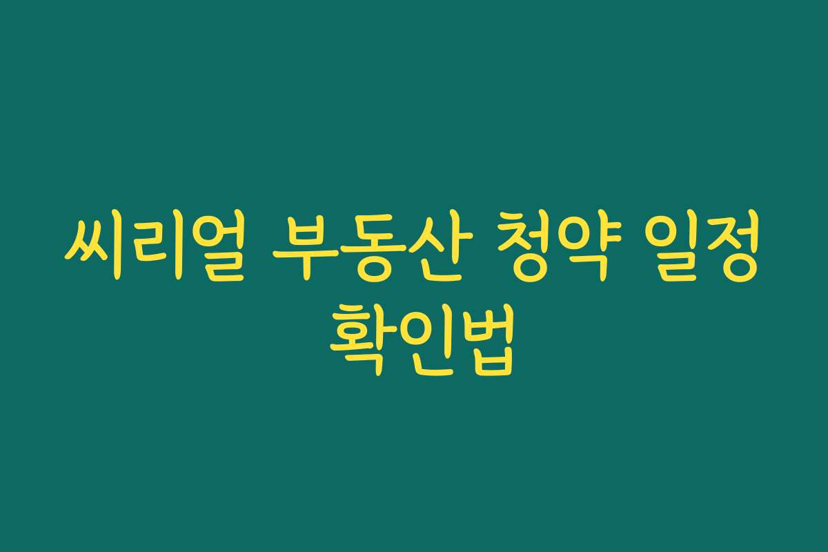 ⚡ 씨리얼 부동산 청약 일정 확인법 똑똑하게 해결하는 방법