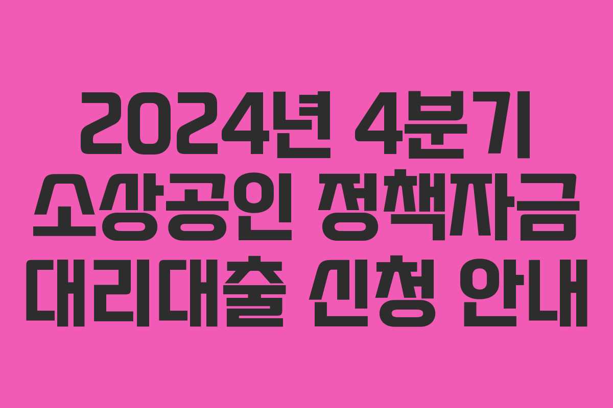 2024년 4분기 소상공인 정책자금 대리대출 신청이 시작되었습니다. 이번 기회를 통해 소상공인 여러분의 사업 성장을 도울 다양한 대출 프로그램을 활용해 보세요.