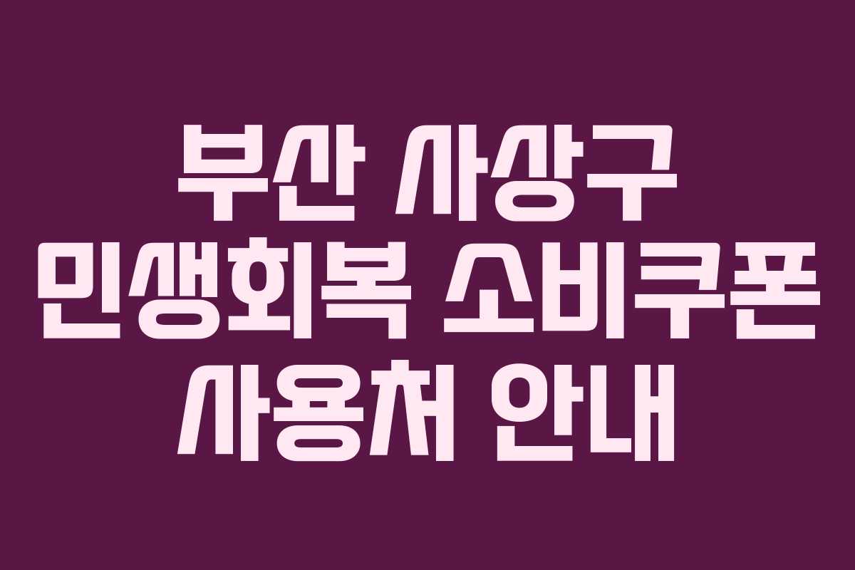 답변: 부산시 및 사상구청 홈페이지나 콜센터를 통해 사용처를 확인할 수 있습니다.