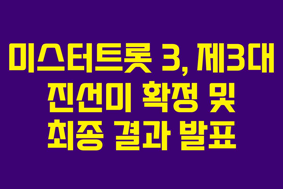 2024년 12월 19일, TV조선의 인기 프로그램 미스터트롯 3에서 제3대 진선미가 탄생했습니다. 이번 결승전은 생방송으로 진행되었으며, 국민 응원 문자 투표가 함께 이루어져 참가자들에게 많은 지지를 받았습니다.