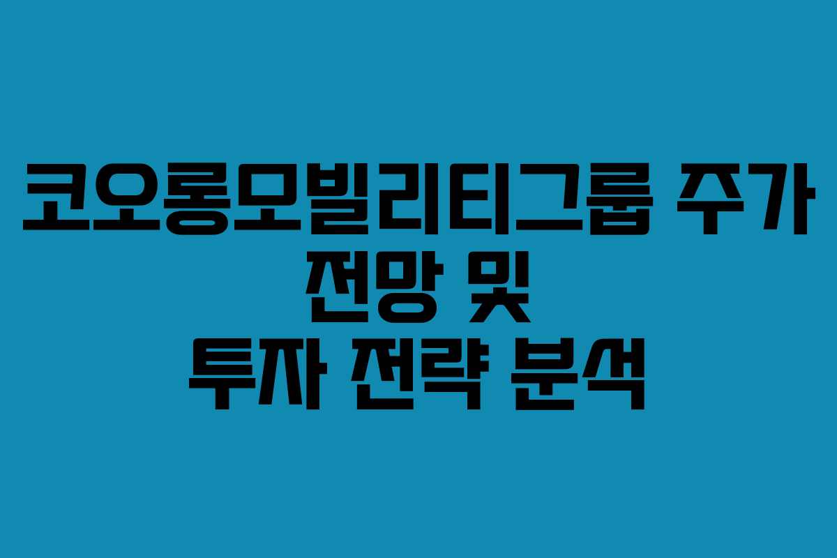 코오롱모빌리티그룹은 최근 자진 상장폐지 절차와 함께 상한가를 기록하며 많은 관심을 받고 있습니다. 이번 글에서는 코오롱모빌리티그룹의 주가 상승 배경, 기술적 분석, 목표주가, 투자 전략 등을 자세히 살펴보겠습니다.