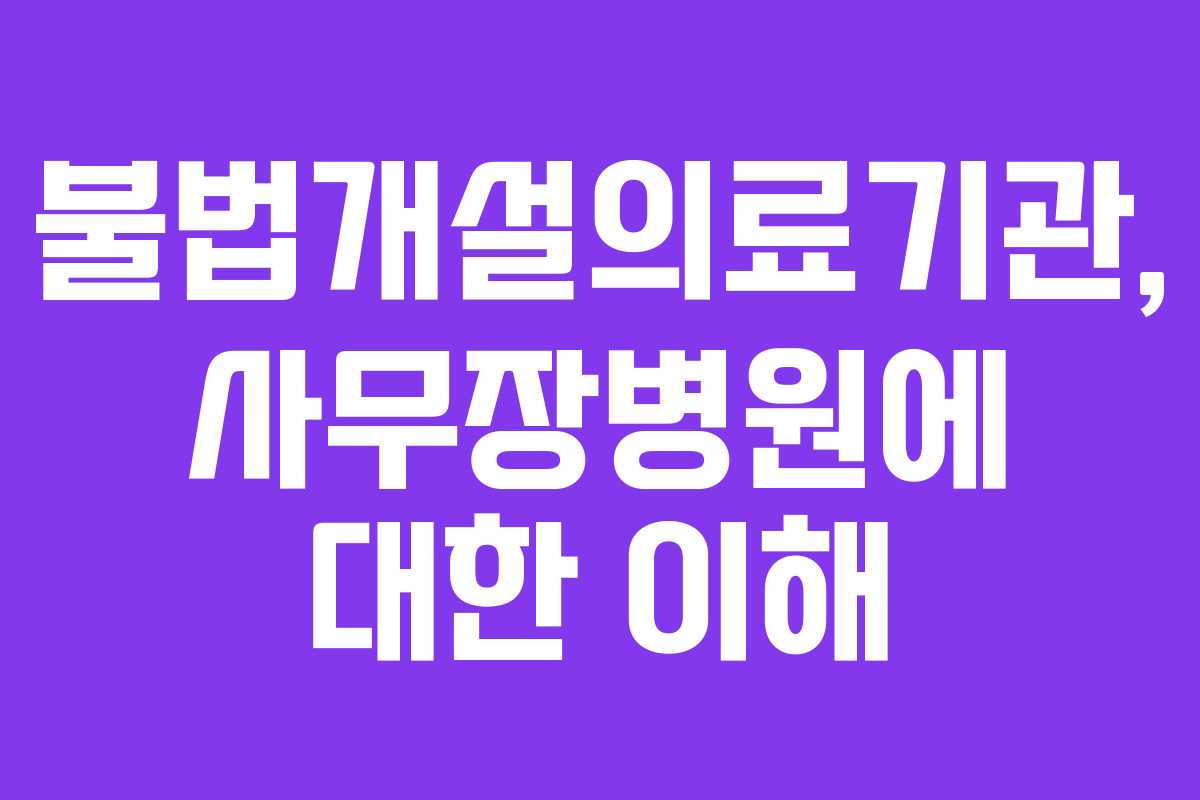 사무장병원은 의료기관을 개설할 수 없는 비의료인이 의료인을 고용하거나 법인의 명의를 불법으로 사용해 운영하는 병원을 의미합니다. 이러한 병원은 환자의 건강보다 수익을 우선시하여 의료 서비스의 질이 낮고, 과잉 진료로 국민의 의료비 부담이 가중되는 문제가 발생하고 있습니다.